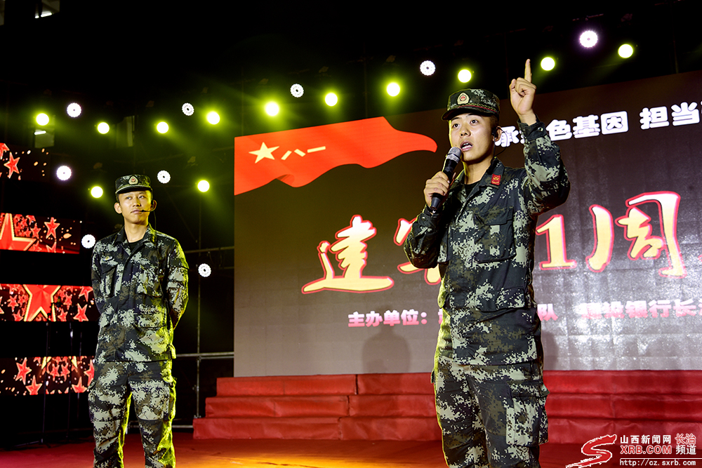 图为2018年7月27日晚,陕西省长治市武警长治支队举办“传承红色基因,担当强军重任”庆祝建军91周年文艺晚会。整场晚会节目精彩纷呈、激情洋溢,既表现了武警官兵积极进取、奋发向上的精神风貌,又展现了新时期“军民一家亲,鱼水不分离”的良好军民共建关系,奏响了军民共建的和谐乐章。图片来源:山西新闻网