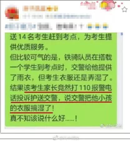 原标题:[关注]暴雨中,交警护送考生反被家长投诉“衣服湿了”,官方回应超霸气